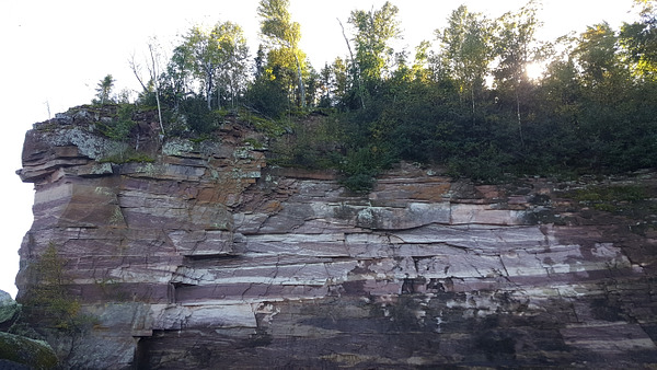 This towering sandstone headland sits at the northernmost end of Big Bay, and defines the eastern limit of Salmon Trout Bay. Reaching it by land requires off-trail travel.