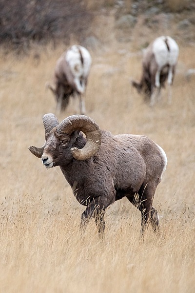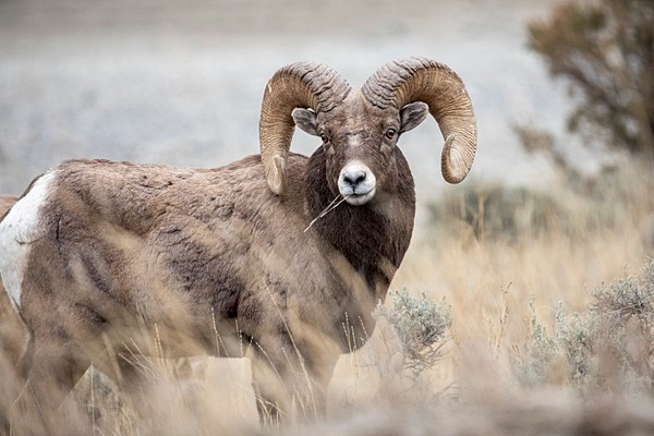 Bighorn sheep ram in Gardiner, Montana, Aston Hooker (NPS) photograph above.