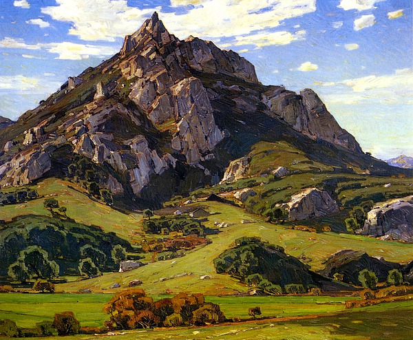 Now we find him painting away for dear life and for months at a time in the cold and remote recesses of the high Sierras; now he is in the hottest pockets of the desert; now he is perched on the rocks of the Pacific. Seldom, indeed, is he "at home," the business of painting is too engrossing for that.