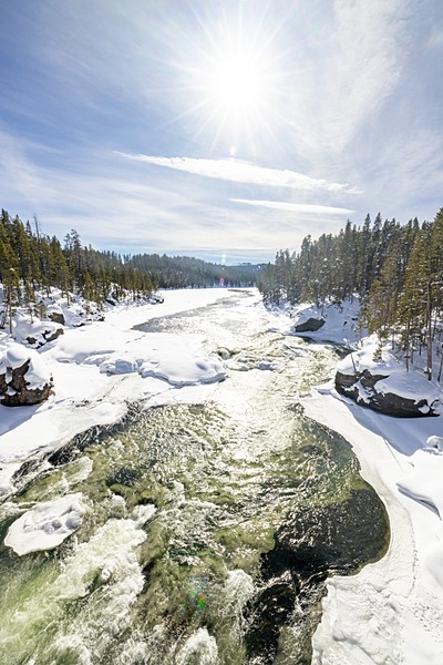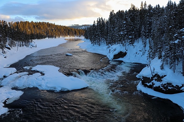 A rapid in the Yellowstone River as seen from Chittenden Bridge in winter, A. Falgoust (NPS) photograph above.