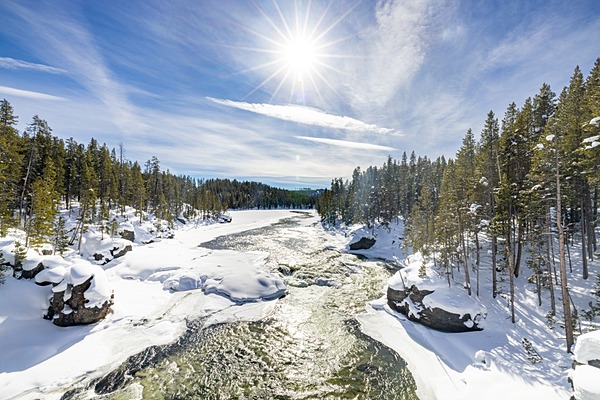 Yellowstone River’s rapid upstream from the Chittenden Bridge in winter, Jacob W. Frank (NPS) two photographs above.