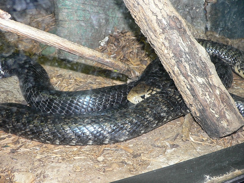 The forest cobra (Naja melanoleuca), also commonly called the black cobra and the black and white-lipped cobra, is a species of venomous snake in the family Elapidae. The species is native to Africa, mostly the central and western parts of the continent. It is the largest true cobra species with a record length of 3.2 metres (10 feet). Although it prefers lowland forest and moist savanna habitats, this cobra is highly adaptable and can be found in drier climates within its geographical range. It is a very capable swimmer and is often considered to be semi-aquatic. The forest cobra is a generalist in its feeding habits, having a highly varied diet: anything from large insects to small mammals and other reptiles. This species is alert, nervous and is considered to be a very dangerous snake.…