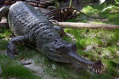 Gavialidae is a family of large semiaquatic reptiles, resembling crocodiles, but with much thinner snouts. The thin snout is used to catch fish. Gavialids lack the jaw strength to capture the large mammalian prey favoured by crocodiles and alligators of similar size. Gavialidae consists of only two extant (living) members from Asia, the gharial (Gavialis gangeticus) and the false gharial (Tomistoma schlegelii), although many extinct members are known from a broader range.