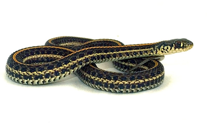 The plains garter snake (Thamnophis radix) is a species of garter snake native to most of the central United States as far north as Canada and as far south as Texas. It has a distinctive orange or yellow stripe from its head to tail, and the rest of its body is mainly a gray-green color. The snake is commonly found living near water sources such as streams and ponds, but can also be found in urban areas and vacant lots. Although the IUCN lists the species as "Least Concern", some states have given it their own special status. This species is mildly venomous, although the venom is not toxic to humans.