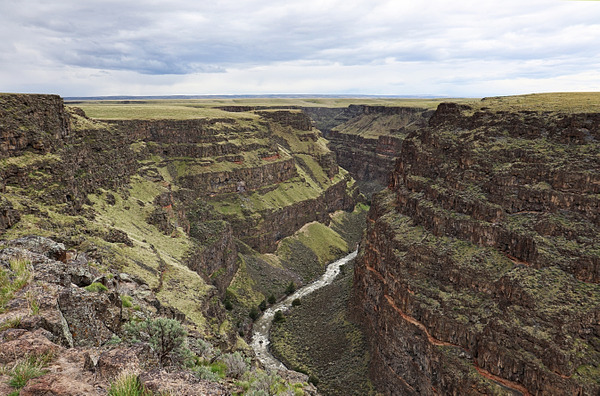 The Bruneau River is a 153-mile-long (246 km) tributary of the Snake River, in the U.S. states of Idaho and Nevada. It runs through a narrow canyon cut into ancient lava flows in southwestern Idaho. The Bruneau Canyon, which is up to 1,200 feet (370 m) deep and 40 miles (64 km) long, features rapids and hot springs, making it a popular whitewater trip. The Bruneau River's drainage basin is bounded by the Jarbidge Mountains to the southeast, the Owyhee Mountains and Chalk Hills to the west, and the Bruneau Plateau to the east.