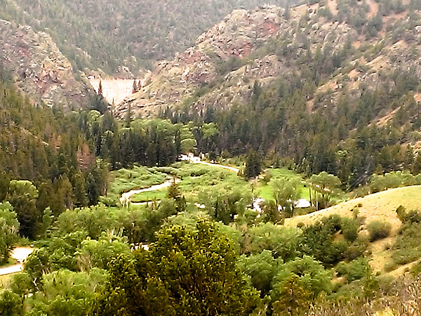 The Cimarron River, flowing entirely in New Mexico, was also known as La Flecha or Semarone. Its headwaters are Moreno, Sixmile, and Cieneguilla creeks in the Sangre de Cristo Mountains, which feed into Eagle Nest Dam. From the dam, it runs for 60 miles (97 km) to below the city of Springer, New Mexico in the Taylor Springs area, where it flows into the Canadian River, the southwestern-most major tributary flowing into the Mississippi River via the Arkansas River sub-basin. This river flows within a mountainous canyon that is part of Cimarron Canyon State Park in the lower Sangre de Cristo Mountains and runs down into eastern plains of New Mexico. This headwaters region is also home to the Philmont Scout Ranch.