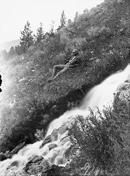 Spring in Gallatin Canyon, Gallatin Range. Yellowstone National Park, Wyoming. ca. 1890. Joseph Paxson Iddings (USGS) photograph above.