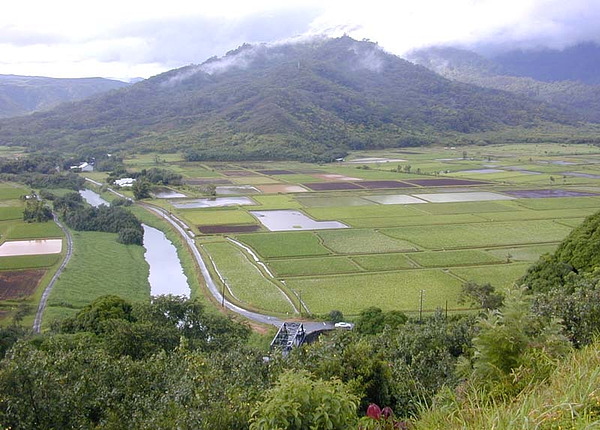 The Hanalei River on the island of Kauaʻi in Hawaii flows north from the eastern slopes of Mount Waiʻaleʻale for 15.7 miles (25.3 km) until it reaches the Pacific Ocean at Hanalei Bay as an estuary. With a long-term mean discharge of 216 cubic feet (6.12 cubic meters) per second, in terms of water flow it is the second-largest river in the state; although its watershed of 19.1 square miles (49 km2) is only sixth-largest on Kauaʻi, it encompasses areas of the highest recorded rainfall on the planet and plunges precipitously from its headwaters at 3,500 feet (1,100 m) above sea level. The lower, flatter portion of the river flows by Hanalei National Wildlife Refuge and many taro farms (60% of Hawaii's taro is grown in this area). The Hanalei River provides habitat for a number of…
