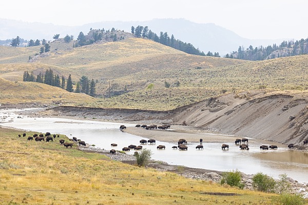 Bison crossing Lamar River near the confluence with Slough Creek, Jacob W. Frank (NPS) photograph above.