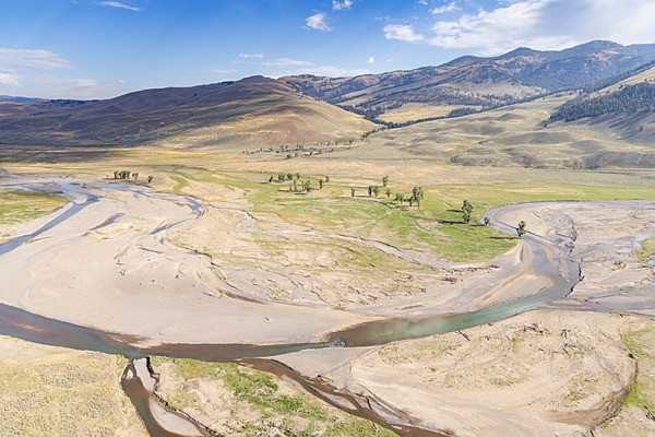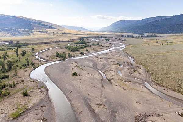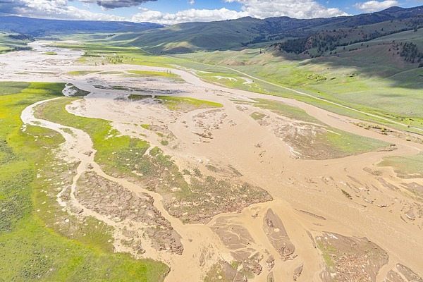 Yellowstone flood event 2022: Lamar River and Lamar Valley post spring flood (taken September 1), Jacob W. Frank (NPS) photograph above.