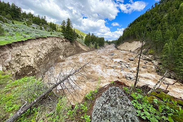 Lamar River Canyon at high water on June 13, 2022, Chase Tedder (NPS) photograph above.
