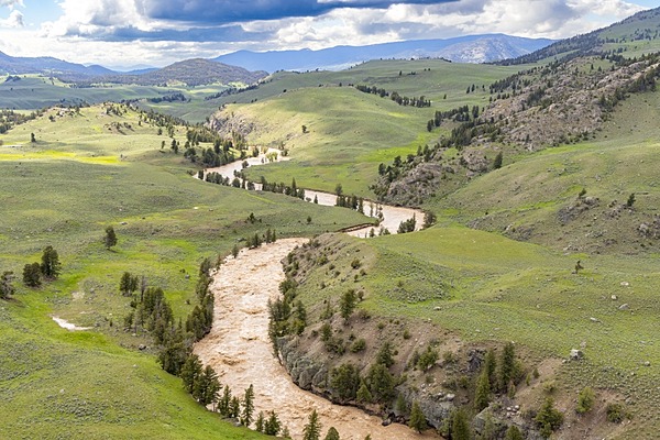 Swollen Lamar River and Lamar Valley on July 8, 2022, Jacob W. Frank (NPS) photograph above.