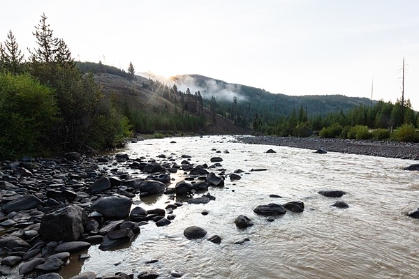 Lamar River above the Confluence with the Yellowstone River on June 13, 2022, Jacob W. Frank (NPS) two photographs above.