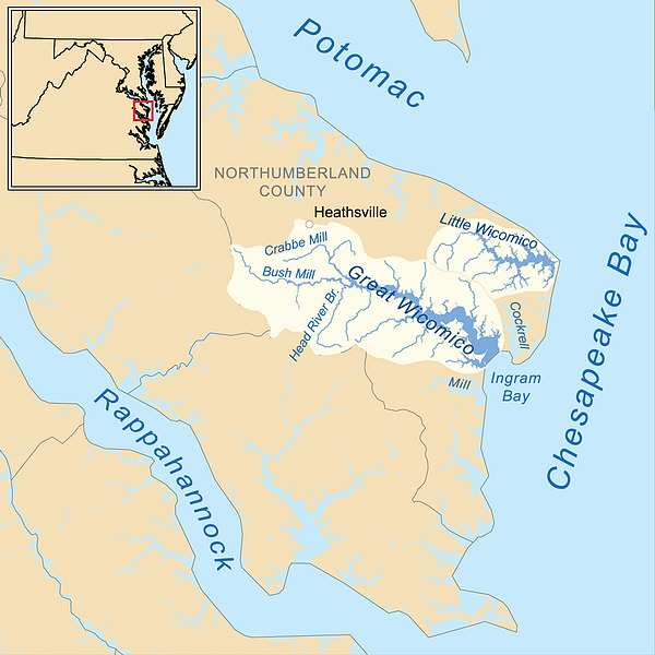 The Little Wicomico River is a 9-mile-long (14 km) river in the United States state of Virginia. The river, mostly tidal, lows into Chesapeake Bay at the junction of the south shore of the Potomac River, which is also the Maryland-Virginia boundary, with Chesapeake Bay.