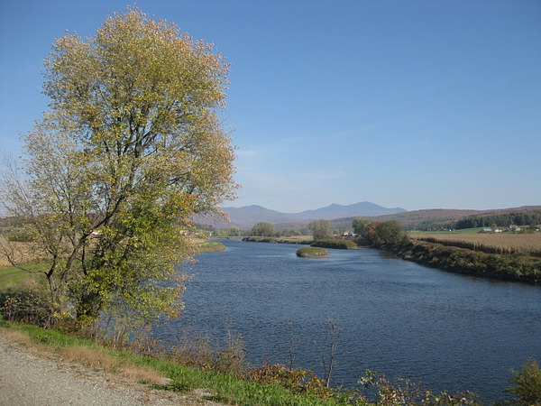 The Missisquoi River is a tributary of Lake Champlain, approximately 80 mi (130 km) long, in northern Vermont in the United States and southern Quebec in Canada. It drains a rural area of the northern Green Mountains along the Canada–US border northeast of Lake Champlain, and an area of Quebec's Eastern Townships. The South Branch rises in Vermont and runs generally from southeast to northwest; the North Branch rises in Lake d'Argent in Eastman, Quebec, and runs from north to south. The North Branch and the South Branch join at Highwater, Quebec, just downriver from North Troy, Vermont. The river then runs in Quebec for approximately 15 miles (24 km), re-entering Vermont at Richford and thence to Lake Champlain's Missisquoi Bay.