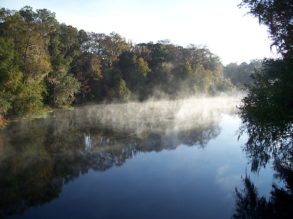 The Santa Fe River is a 75-mile (121 km) river in northern Florida. The watershed of the river is approximately 1,380 square miles (3,574 km2) and spreads across southern Columbia, southern Suwannee, western Bradford, far southern Baker, Union, northern and eastern Gilchrist, and northern Alachua counties. The headwaters of the river are Lake Santa Fe, near Keystone Heights. The Santa Fe River is usually a slow-flowing river. This slow speed, combined with the abundant leaf-drop from nearby trees, especially Bald Cypress, leads to a very dark-brown river. The Santa Fe River is unusual in that it completely disappears underground and then reappears 3 miles (4.8 km) downstream. The river drops into a large sinkhole in O'Leno State Park and reappears in the adjacent River Rise Preserve State…