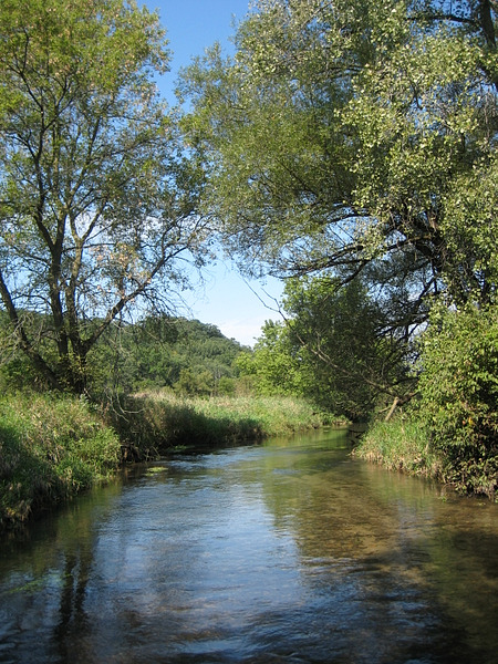 The Sugar River is a tributary of the Pecatonica River, approximately 91 miles (146 km) long, in the U.S. states of Wisconsin and Illinois. It rises in the hills of southwest Wisconsin, in southwest Dane County, approximately 15 miles (24 km) southwest of Madison. The headwaters are at the southern terminus of the last North American glacier. West of the river, the land elevates from lack of glaciation and joins what is known as the "driftless area", known for its abrupt hills and valleys, covering most of southwest Wisconsin. From its source, the river meanders southeast, past Paoli and Belleville, where it is dammed to form Lake Belle View. From there it meanders east of Monticello where it is joined by the Little Sugar River and flows south through Albany, and Brodhead. It crosses into…