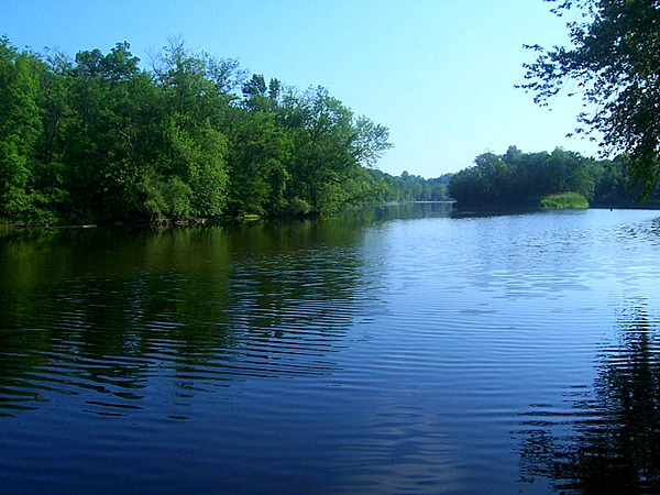 The Wallkill River, a tributary of the Hudson, drains Lake Mohawk in Sparta, New Jersey, flowing from there generally northeasterly 88.3 miles (142.1 km) to Rondout Creek in New York, just downstream of Sturgeon Pool, near Rosendale, with the combined flows reaching the Hudson at Kingston. The river is unusual because it flows north between two major south-flowing rivers, the Hudson and the Delaware River. It also has the unusual distinction of being a river that drains into a creek, due to being impounded shortly before the Rondout confluence into a small body of water called Sturgeon Pool near Rifton, and what reaches the Rondout from there is the lesser flow.