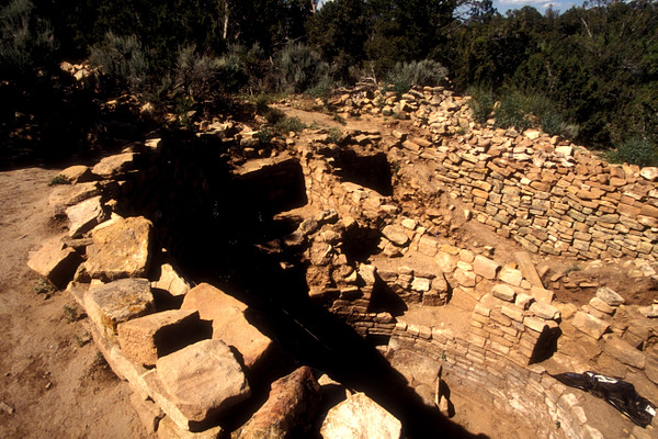 Sand Canyon Pueblo includes the remains of about 420 rooms, 100 kivas and 14 towers. Researchers from the Crow Canyon Archaeological Center excavated several rooms from 1983 to 1993, and then backfilled them to protect standing walls and preserve the site. Interpretive signs provide Native American insights and archaeological perspectives, show how the site was laid out, and display drawings of what Sand Canyon Pueblo might have looked like in the mid-1200s. –