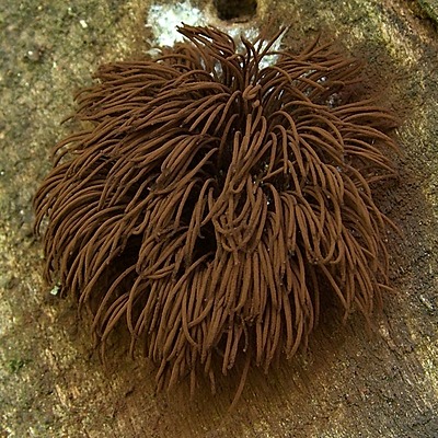 Stemonitis is a distinctive genus of slime moulds found throughout the world (except Antarctica). They are characterised by the tall brown sporangia, supported on slender stalks, which grow in clusters on rotting wood. The genus was first described by German botanist Johann Gottlieb Gleditsch in 1753. A 2014 estimate suggests that there are 18 species in the genus. Identification within the genus is difficult, and can only be performed with confidence using a microscope or by DNA sequencing. A fossil specimen is known from the Mid Cretaceous (99 ma) Burmese amber.