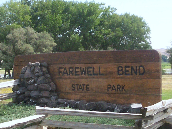 Farewell Bend State Recreation Area is a state park in Baker County, Oregon, United States, about 25 miles (40 km) northwest of Ontario. Farewell Bend was the last stop on the Oregon Trail along the Snake River where travelers could rest and water and graze their animals before the trail turned north through more rugged country to follow the Burnt River.
