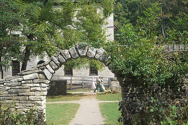 Spring Mill State Park is a 1,358-acre (5 km2) state park in the state of Indiana. The park is located to the south of Bloomington, about 3 miles (5 km) east of the city of Mitchell on Indiana Highway 60. The park is located on the Mitchell Karst Plain, which allowed the park's caves and sinkholes to form in the limestone. The caves include Bronson Cave, Twin Caves, Shawnee Cave (Donaldson Cave), Hamer Cave, and others. A boat tour of Twin Caves is run by the Indiana Department of Natural Resources, which travels about 500 feet (150 m) into the cave. A portion of the park is virgin timber, protected in the Donaldson Woods Nature Preserve. The Mitchell Karst Plain Nature Preserve is notable for its large number of sinkholes, more than 1000 per square mile. Many of the park's features were…