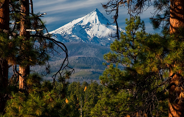Mount Jefferson is a stratovolcano in the Cascade Volcanic Arc, part of the Cascade Range, and is the second highest mountain in Oregon. It is situated in the far northeastern corner of Linn County on the Jefferson County line, with the lower reaches extending northward into southeastern Marion County. The mountain, about 105 miles (169 km) east of Corvallis, is federally protected as part of the Mount Jefferson Wilderness. Due to the rugged area, the mountain is one of the hardest volcanoes to reach in the Cascades, though USFS Road 2243 does come within 4 miles (6.4 km) of the summit. Jefferson's craggy and very glacially scarred appearance makes it especially photogenic.