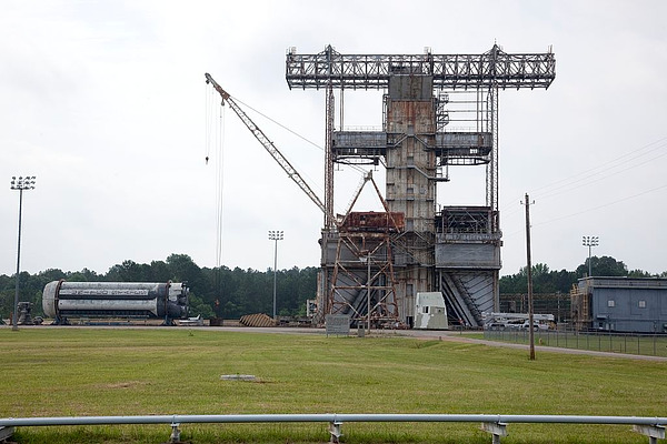 Built in 1957 by the Army Ballistic Missile Agency and transferred to the National Aeronautics and Space Administration (NASA), the Propulsion and Structural Test Facility, in Huntsville, Alabama, became the primary center responsible for the development of large vehicles and rocket propulsion systems. During the 1960s, under the direction of Dr. Werner von Braun, the Saturn family of launch vehicles was developed here. This facility has supported testing of the Army Redstone Rocket, the Saturn S-1B vehicle and the F-1 engine of the Saturn 1-C vehicle employed in the Apollo program. One position of the test stand was later modified to accommodate static testing for the Solid Rocket booster currently used in the Space Shuttle program.