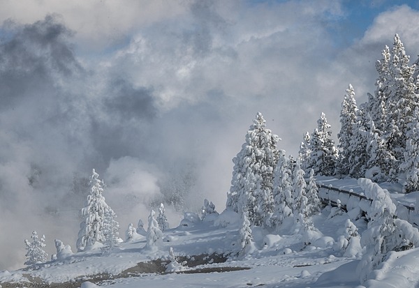 Sunny winter afternoon in Porcelain Basin, Jacob W. Frank (NPS) photograph above.