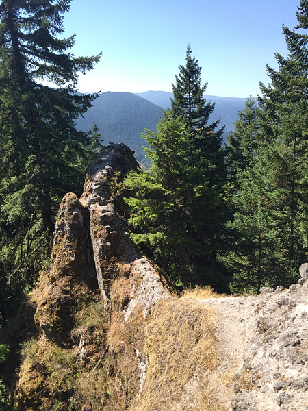 Very low traffic hike, with easy access. Gets steep in some sections, and can requires some care coming down. Top section has some interesting pinnacles, which show some wear from scrambling, and a knifes edge you can walk out on. Although falls from these would not end well.