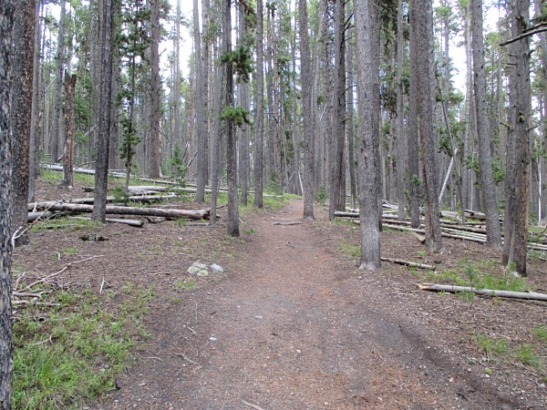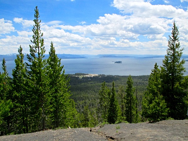 The Elephant Back Mountain Trail is a popular 3.5-mile (5.6-km) lollipop loop trail near Lake Village, this trail climbs 800 feet (244 m) in 1-½ miles (2.4 km) through the dense lodgepole forest. After 0.8 of a mile, the trail splits into a loop. The left fork is the shortest route to the top, though both join again at the overlook. The overlook provides a sweeping panoramic view of Yellowstone Lake and surrounding area. - NPS