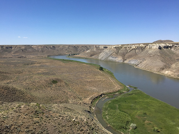 Looking eastward from trailhead up to Hole in the Wall to the right.