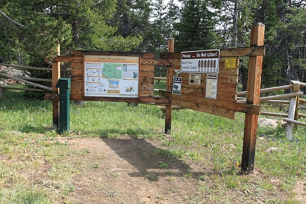 This trailhead marks the beginning of the Bucking Mule Falls National Recreation trail - a 15 mile trek through meadows and canyons. The trail gets its name after a pair of granite spires that the trail traverses.
