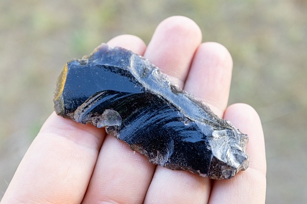 South Boundary Trail: obsidian worked stone, Jacob W. Frank (NPS) photograph above.