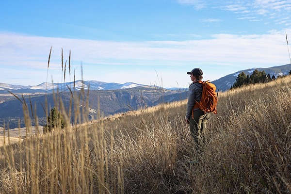 A hiker takes in the views along the Beaver Ponds Loop Trail, Addy Falgoust (NPS) two photographs above.