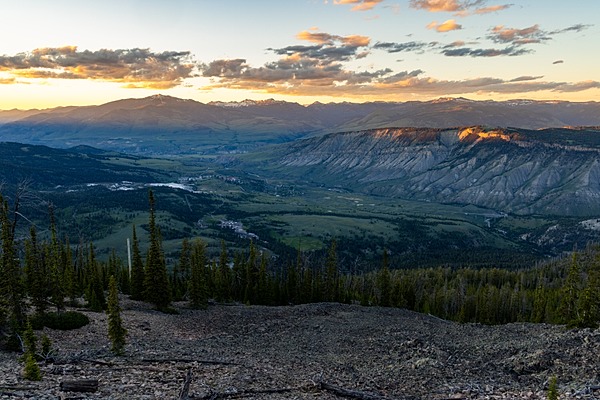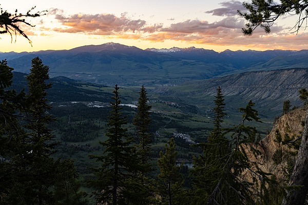 Sunset through the trees on Bunsen Peak Trail, Jacob W. Frank (NPS) photograph above.