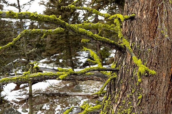 Crevice Creek Trail: lichen on a tree, Jacob W. Frank (NPS) photograph above.