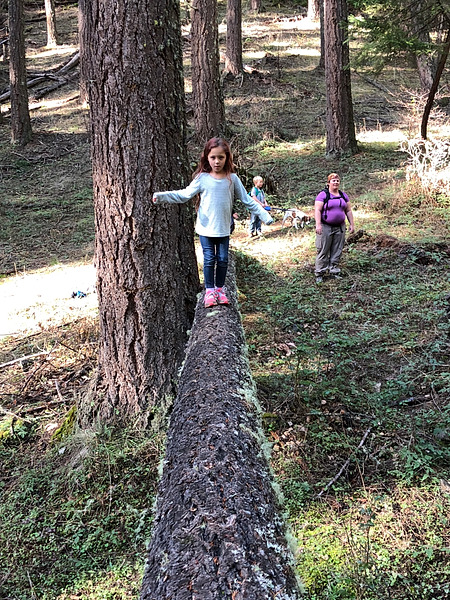 The trail says it is biker and horse friendly. We got to say hello to two horseback hikers which was fun for the kids.