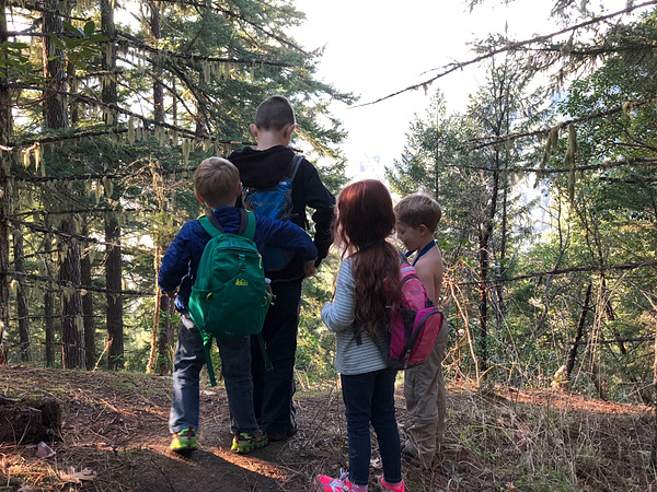This is such a beautiful hike on a well kept trail. The top viewpoint does not lend much of a viewpoint, but the hike itself was very pretty and had lots of variation to keep us interested. The trail is quite consistently up-hill with steeper and moderate sections. The forested area has huge oaks and pines and the shapes of the tree’s are fun with long tangling arms and mossy bodies… hence the name of the hike. We had some fun parkour pitstops on fallen tree’s.