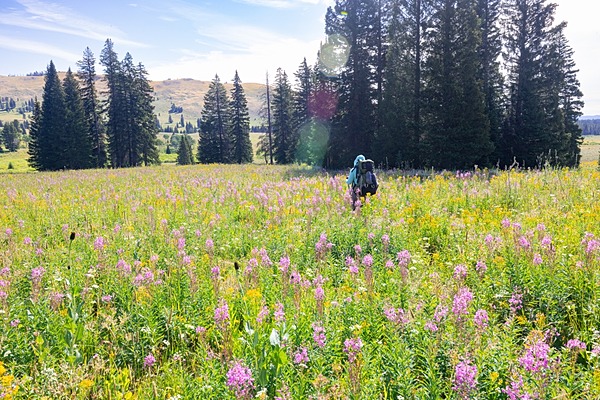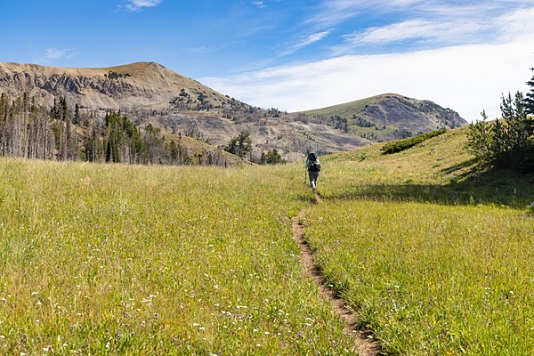 Hiking the Fawn Pass Trail through wildflowers, Jacob W. Frank (NPS) photograph above.