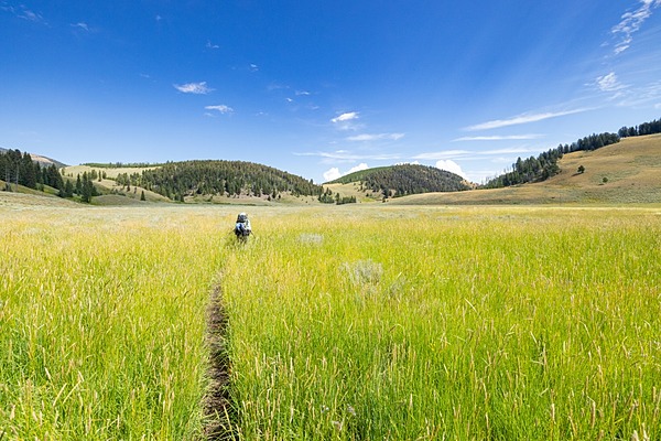 Hiking the Fawn Pass Trail towards the Snow Pass Trail Junction, Jacob W. Frank (NPS) photograph above.
