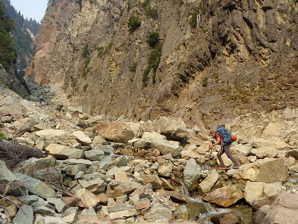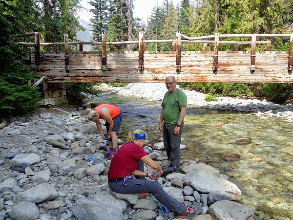 There was a large bridge crossing the Waptus River, and it was easy to get down to the water for a break and to fill up for the next section that was waterless. We would not have access to water until the following day so everyone filled up every bladder and bottle. Just a little extra weight to make the climb a bit more challenging!