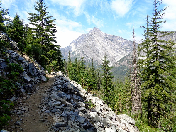The trail started off very nicely through the timber with just a little bit of downhill but soon we were dropping more than 1,000 feet over 4 miles to a hillside traverse above Waptus Lake. The trail above Waptus Lake was a wonderfully flat 3 mile section. Knowing what was coming soon, made this section of trail even more enjoyable. Unfortunately, the trees were so thick, we never had a glimpse of the lake until we were high above climbing Escondido Ridge.