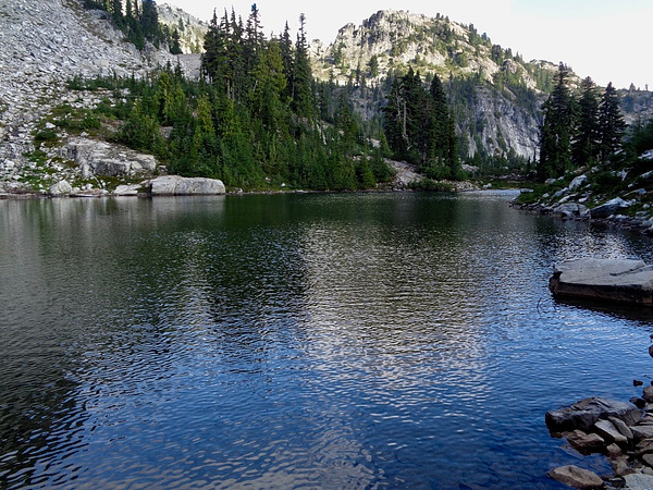 If you like camping on lakes, this is the section for you. Numerous lakes are found along the trail. There are also some long water carries on this section. The first is a 5 mile section from the hazardous water crossing below Mt. Daniel over Cathedral Pass and down to Deep Lake. Next is 7 miles from the Waptus River up Escondido Ridge to the small tarns at the top. Finally, the 8 miles from Park Lakes to Ridge Lake up Chikamin Ridge is waterless.