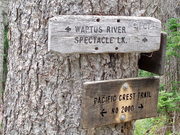 There are two potentially hazardous water crossings. One is at PCT Mile 2441 that crosses an unnamed stream below Mt. Daniel. The stream roars down from a narrow rocky canyon. At high water it can be quite difficult to cross. At lower water, it isn’t bad. There are two channels to cross. The first, coming from the north, is a smaller one easily crossed on downed logs. After it, hike upstream a ways and find a spot to pick your way across. The other potentially hazardous crossing is at Lemah Creek. The bridge crossing has been washed away. It can be waded or there is a log crossing downstream not too far.
