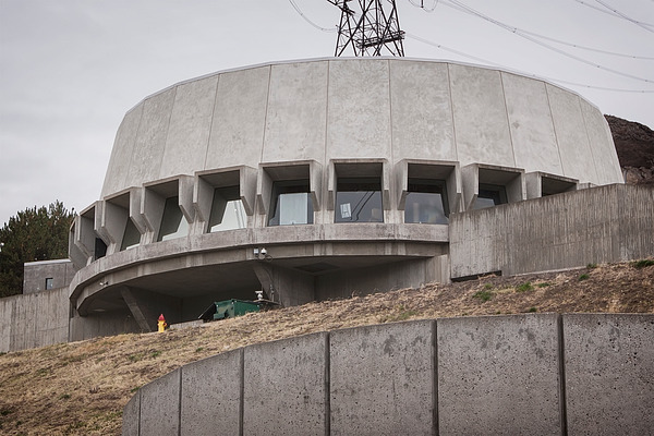 The Grand Coulee Dam Visitor Center was built in the late 1970s as part of the dam’s Third Power Plant expansion. It was designed by architect Marcel Breuer to resemble a generator rotor. An evening laser light show was added in 1989. The center was retrofitted in 2004 for seismic, life-safety, and accessibility standards. The original laser equipment was replaced in 2013 and a new laser light show, One River, Many Voices, premiered in 2014. In 2006, new exhibits and displays were installed. The exhibits interpret Grand Coulee's role as one of the main irrigation, flood control, and hydroelectric dams on the Columbia River. They also address the effects the dam has had on various groups of people, including Native Americans and early settlers. The new exhibits were designed, manufactured, and installed by Formations, Inc., of Portland, Oregon. The visitor center is fully accessible and features hands-on exhibits, an auditorium, and restrooms.