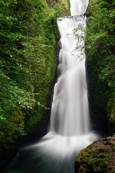 Bridal Veil Falls is a waterfall located on Bridal Veil Creek in the Columbia River Gorge in Multnomah County, Oregon, United States. The Historic Columbia River Highway passes over Bridal Veil Falls on a bridge. From a parking lot on the highway, a winding footpath and another bridge lead to a vantage point for the falls. The falls consists of two cascades in quick succession along angling rockfa…