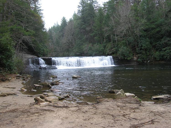 Hooker Falls is a 14-foot (3 m) waterfall located in the DuPont State Forest, southeast of Brevard, North Carolina.