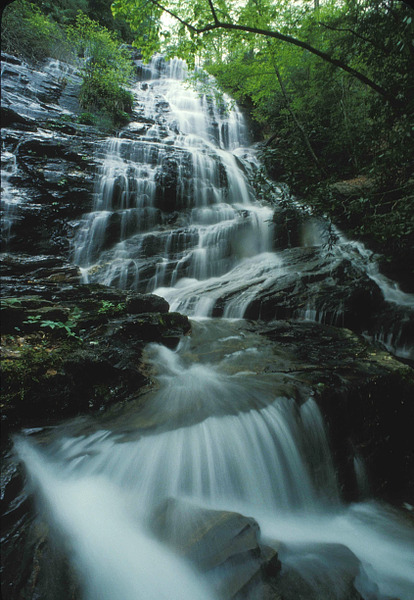 Horsetrough Falls are located on one of the flanks of Horsetrough Mountain in Union County, Georgia. This 70-foot (21 m) waterfall is located on a creek that is part of the headwaters of the Chattahoochee River and is in the Mark Trail Wilderness. There is an observation platform at the falls which can be reached by the 0.4-mile (0.64 km) Horsetrough Falls Trail. The trail begins at the nearby Upp…