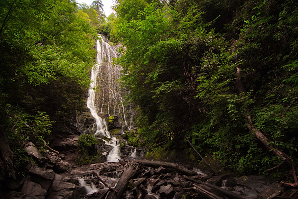 Mingo Falls is a 120 ft (37 m) high waterfall located in the Qualla Boundary—a land trust of the Eastern Band of Cherokee Indians—near the town of Cherokee, Swain County, North Carolina in the Blue Ridge Mountains of the eastern United States. The waterfall is among the tallest in the southern Appalachians.